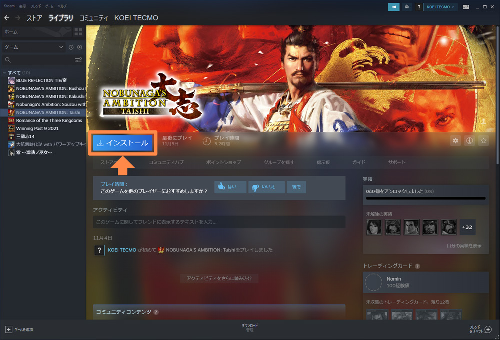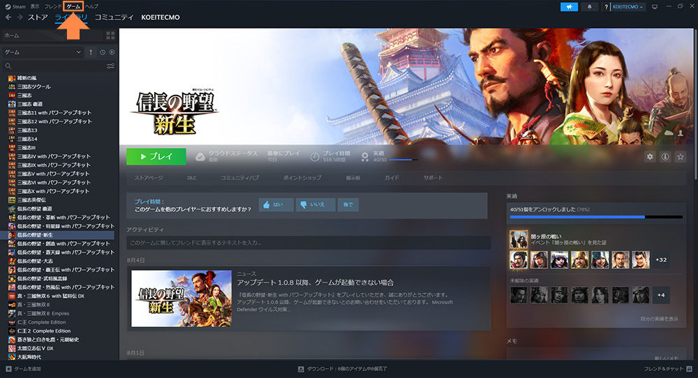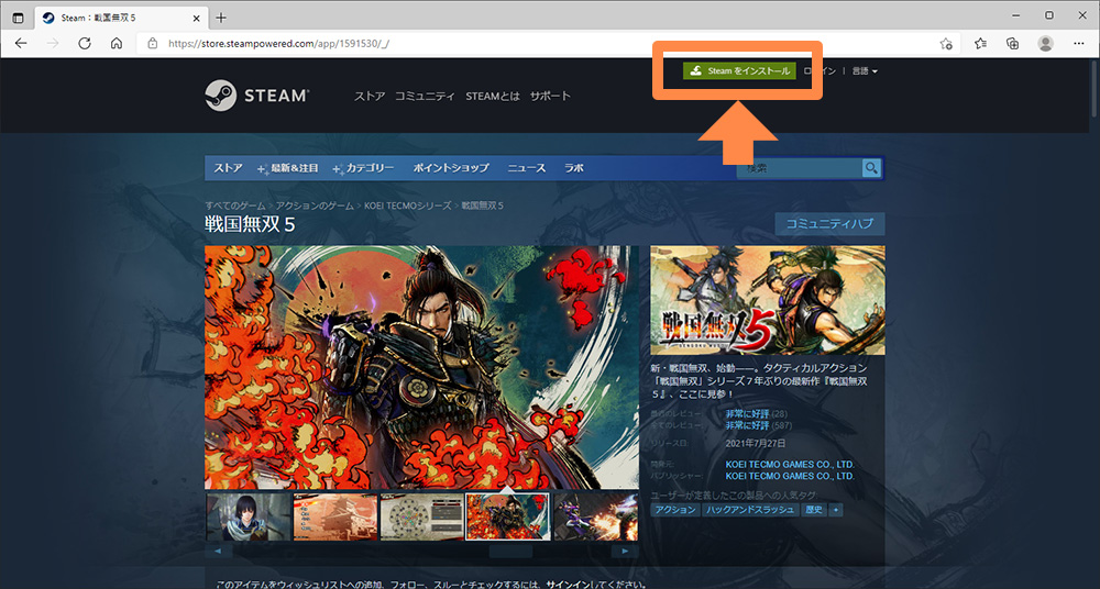 ◆ゲームを未購入、Steamストアでダウンロード版を購入予定の方 ⇒ 1~2の項目をご参照ください。