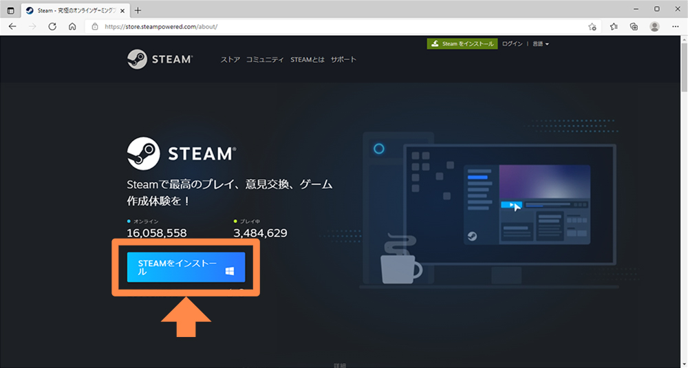 Steamクライアントのインストールおよび、Steamアカウント登録(Steamへの会員登録)を行った上でプレイしていただくことになります。
