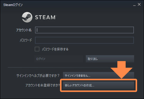 SteamアカウントとSteam CDキーをお持ちの方は 3.Steam CDキーの有効化/ゲームインストール へ進んでください。