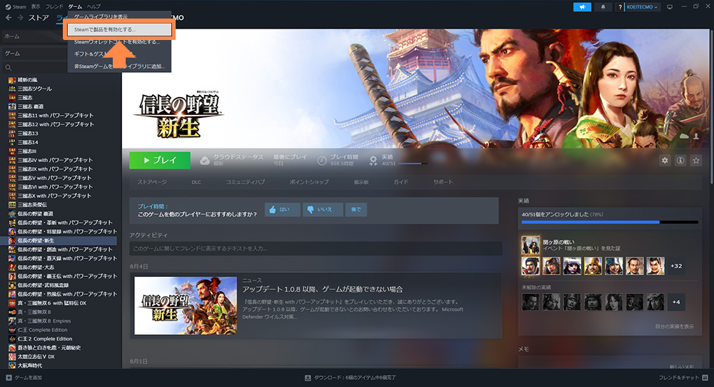 ◆ゲームを購入済みの方(Steam CDキーをお持ちの方) ⇒ 1~3の項目をご参照ください。