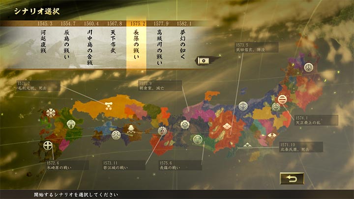 | 使用方法 | 「初めから」を選択し、シナリオ選択画面で「長篠の戦い」を選択すると、プレイしていただけます。 | ||