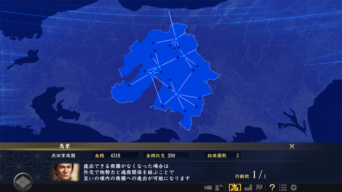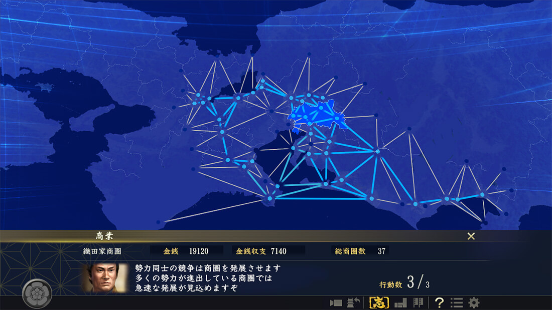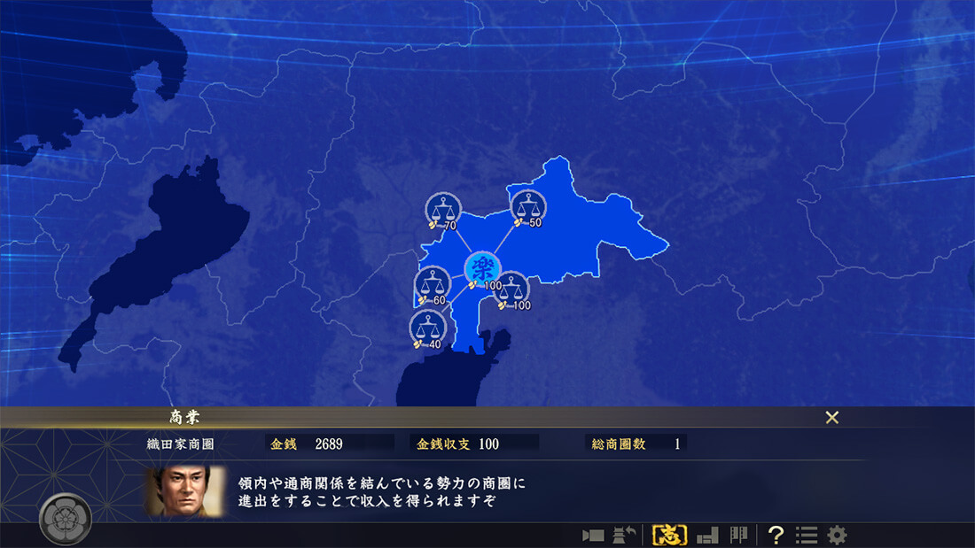 商圏ネットワークを広げ、商圏支配においても優位に立つことが天下統一への近道となる。