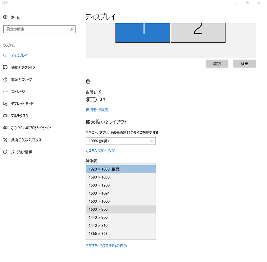 以下の方法を適用すると症状が改善される場合がございます。Windowsのディスプレイ設定にある、「解像度」の設定を現在設定中のものから変更する