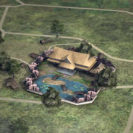 施設は金銭を獲得する“商人町”や、範囲内の敵軍勢を襲撃してくれる“忍の里”など、内政や合戦に影響を及ぼす複数種類があります。