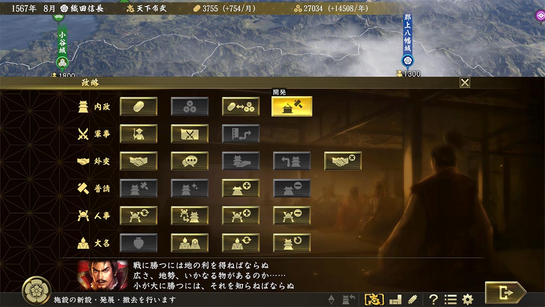 - 合戦の「講和」交渉においてAIが示す提示条件のバランスを調整
