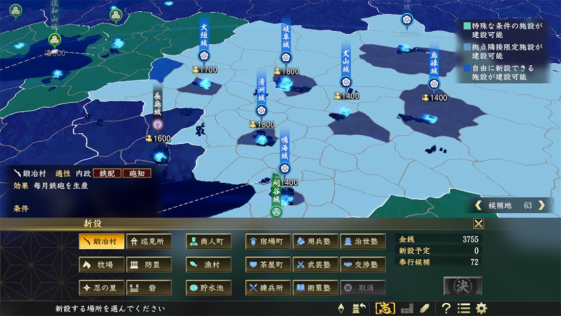 - 築城コマンドで自勢力の郡が判別しやすいよう郡の色を調整