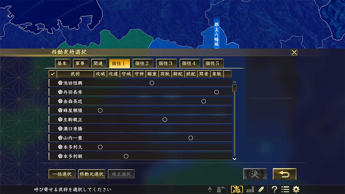 - 配属の移動武将選択画面で、武将の戦法の説明を表示するよう調整