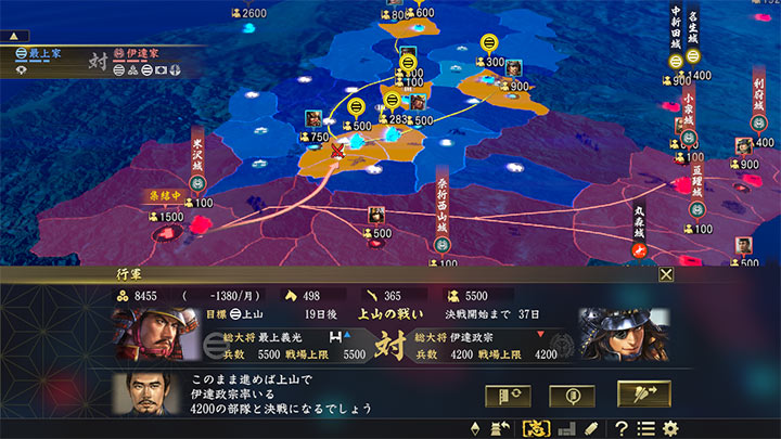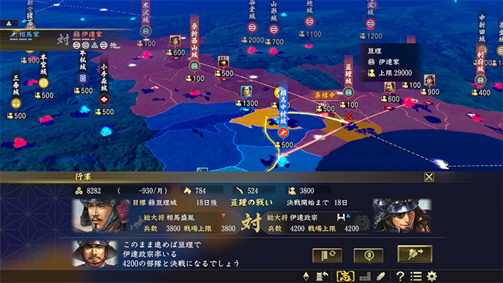 政宗は明確なビジョンの下、まずは勢力地盤を固めるために、奥州一帯の制圧を狙ってくるだろう。
