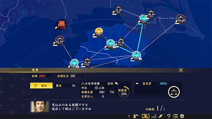 金山を保有すればするほど自勢力の影響下にある「商圏」が成長しやすくなるため、金山のある「商圏」への進出や領地拡大が重要な戦略となる。