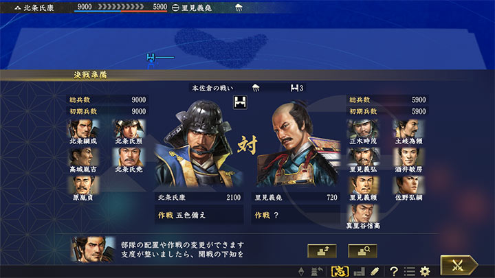 義堯は上記の「志」を生かしつつも、“三つ鱗を討ち果たし、いずれは関八州の主とならん”と、打倒北条家を積極的に狙ってくる。プレイヤーは北条家を選択するときには、里見家の動きをよく把握しておく必要がある。