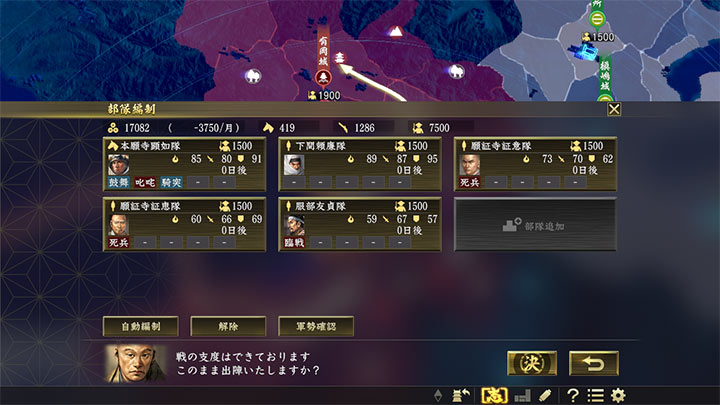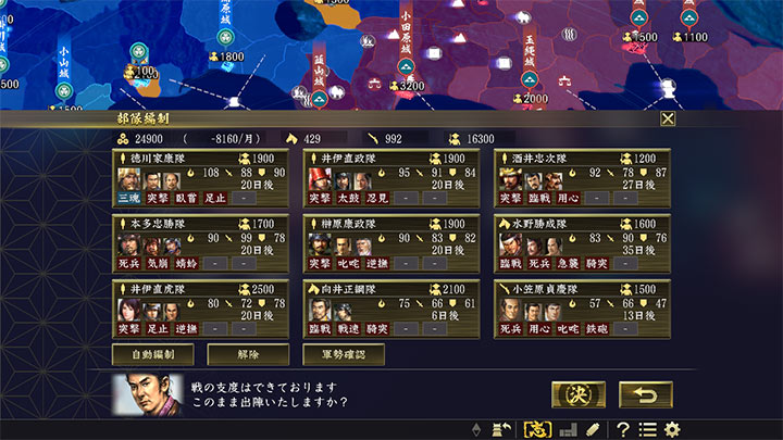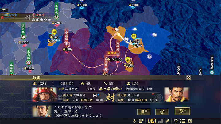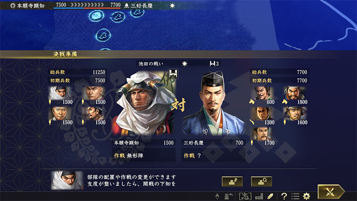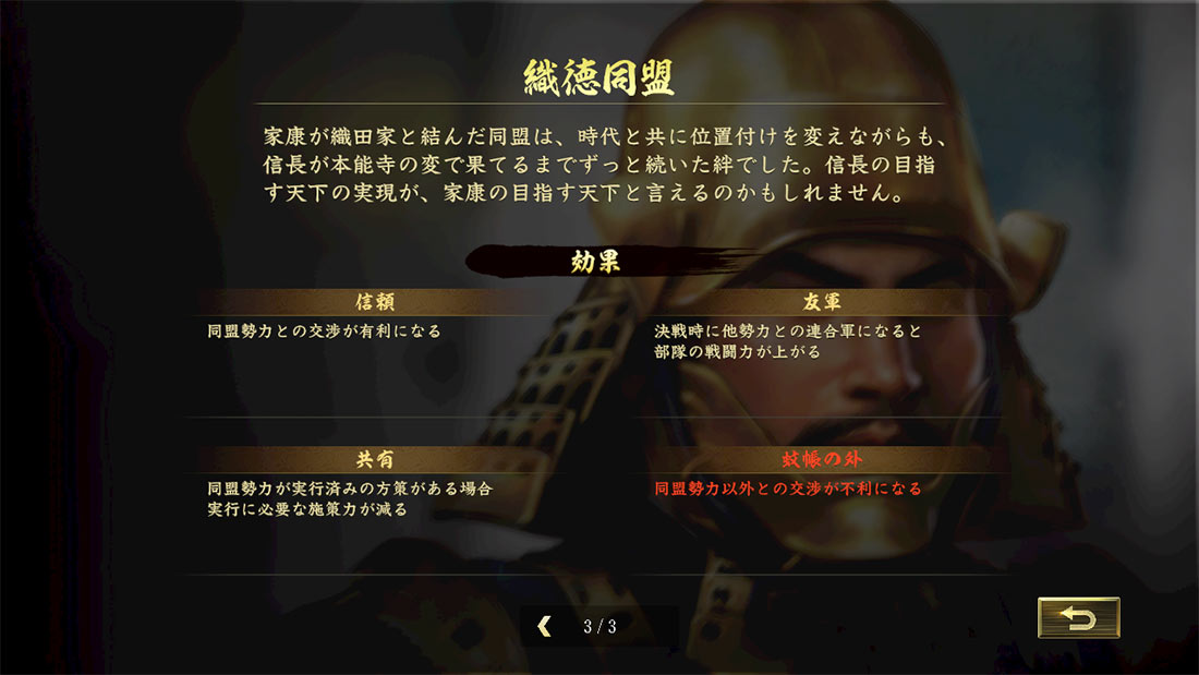 こうした強みがある一方で、同盟勢力との連合軍で挑んだ決戦に敗れてしまうと戦意が大幅に下がる。史実の「関ヶ原の戦い」の二の舞にならぬよう、決戦時の戦いかたには注意を払いたい。