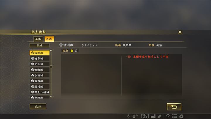 ただ「天下の大悪人」は世から容赦なく叩かれるのか、合戦中、敵勢力の民忠は上がってしまう。