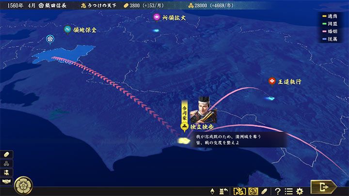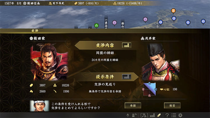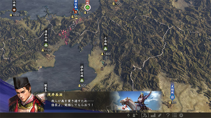 軍事に長け、豊かな近江地方の商圏を押さえ、背後には朝倉が控えている。浅井家に安易に宣戦するのはリスクが高く、攻めるタイミングを慎重に図る必要があるだろう。
