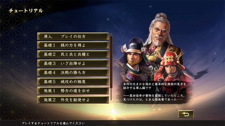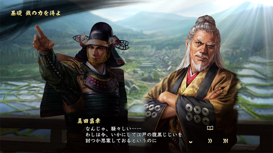 真田昌幸、信幸親子がテンポの良い会話を繰り広げながら、ゲームシステムをコミカルかつ丁寧に解説。