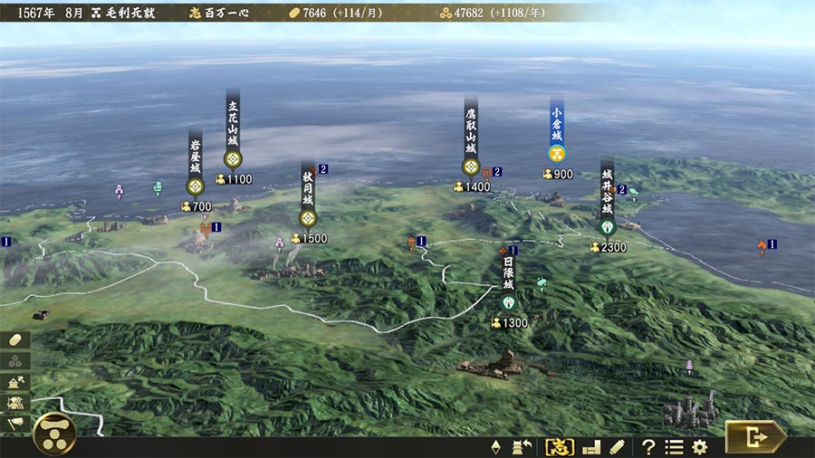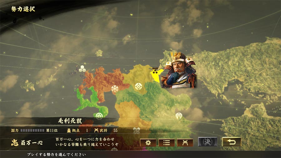 一方で毛利家のそうそうたる武将が集結しているため、領地における劣勢を優秀な武将の能力でいかにカバーし、領地を拡大していけるかがプレイヤーの腕の見せ所となる。