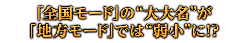 たとえば、シナリオ「天下布武」の毛利家は、「全国モード」であれば中国地方に広大な領地を保有しているが、九州の「地方モード」でゲームを開始すると、わずかな領地から九州統一を目指さなければならない。