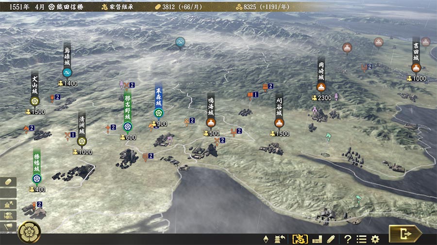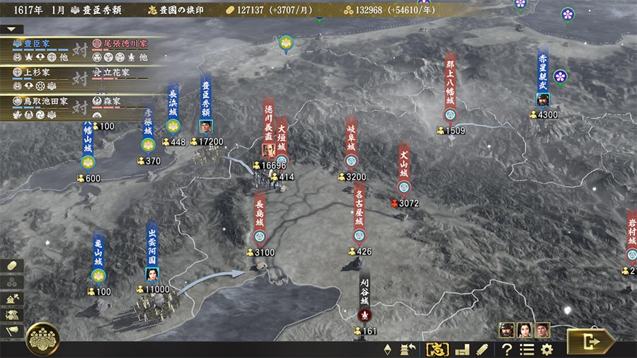 尾張徳川家はこのシナリオ中で上位の国力を有しており、手強い相手となるだろう。