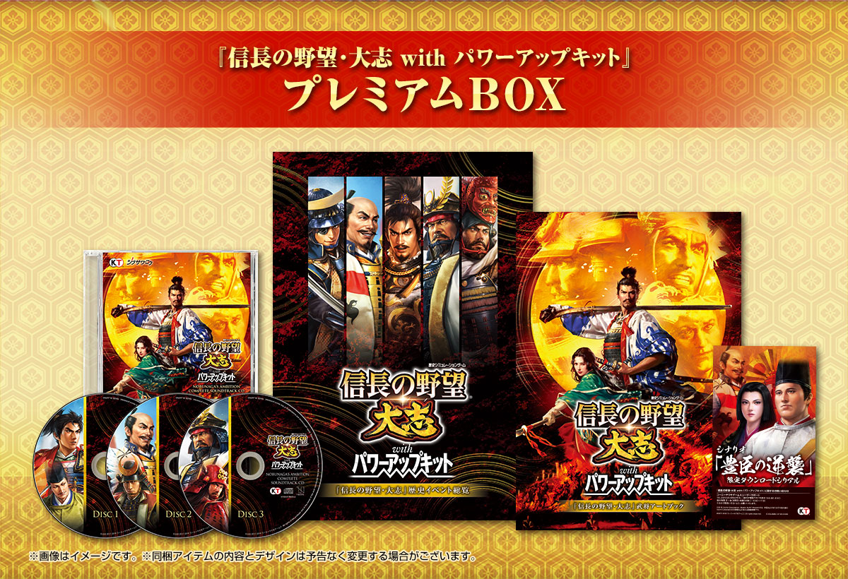 『信長の野望・大志 with パワーアップキット』のすべてのBGMを収録した豪華3枚組のサウンドトラックCD。