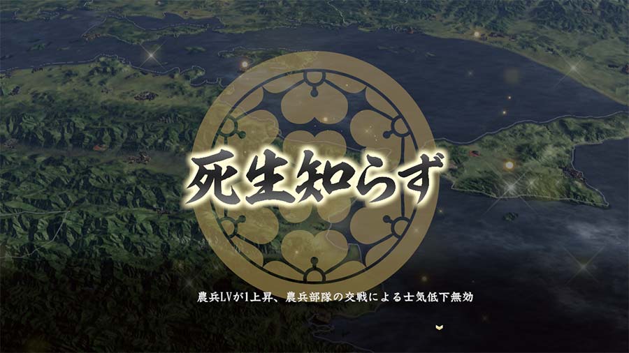 長宗我部元親の大命「死生知らず」は、一定期間農兵LVを上昇させ、交戦による農兵の士気低下を無効にする、非常に強力な大命だ。急速に領土を広げつつある羽柴家の勢いを、戦で止めるのであれば、大命「死生知らず」は有効な手段となる。