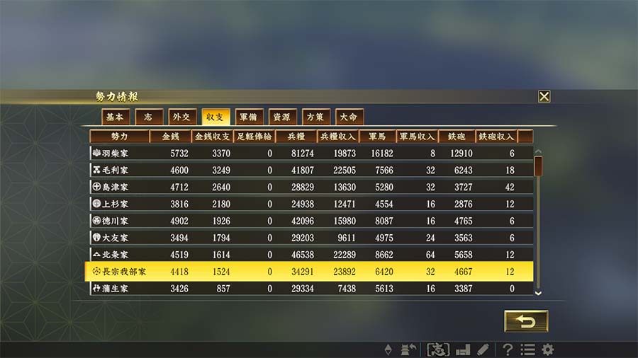 ▲ 羽柴家と比べると金銭収入が少なく、長期戦では不利になるだろう。