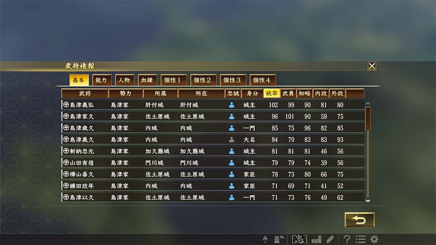 統率に優れた武将が多い島津家では、方策「当世具足」を実行することができる。