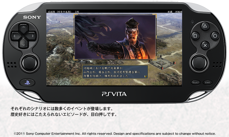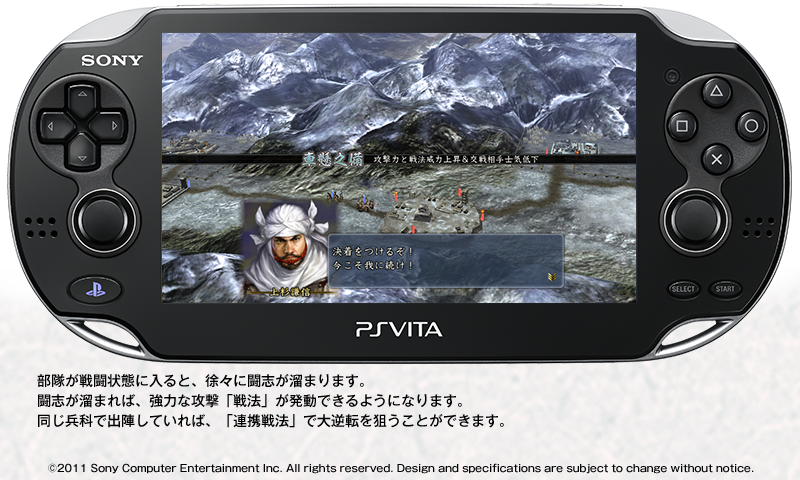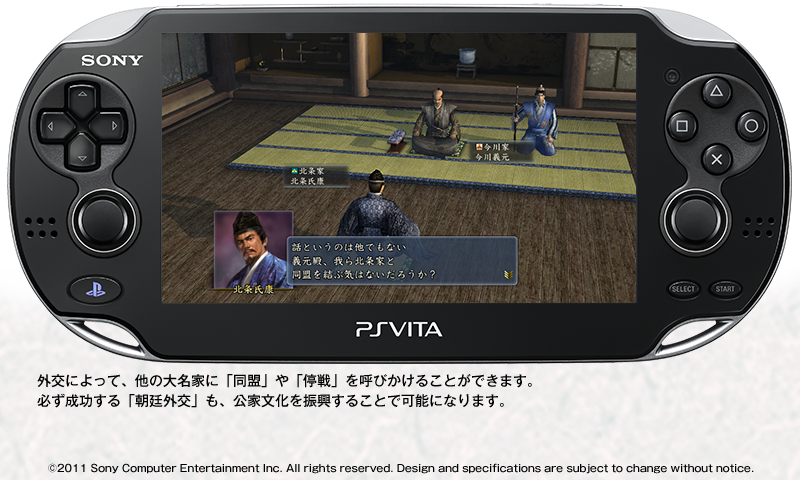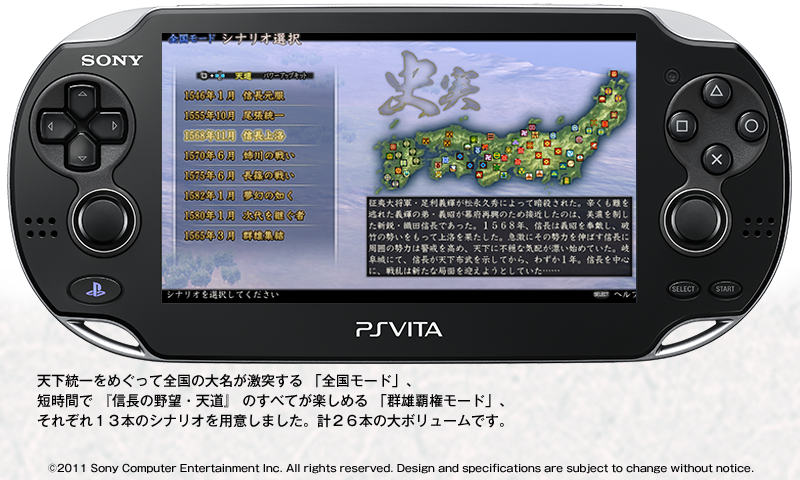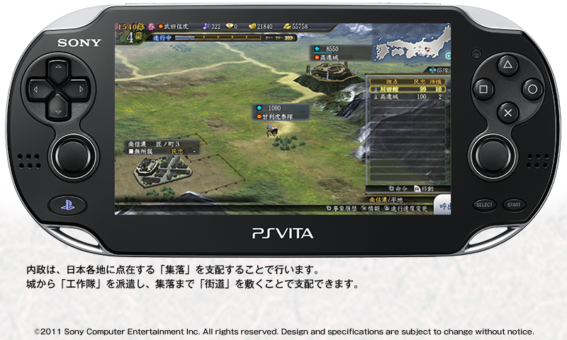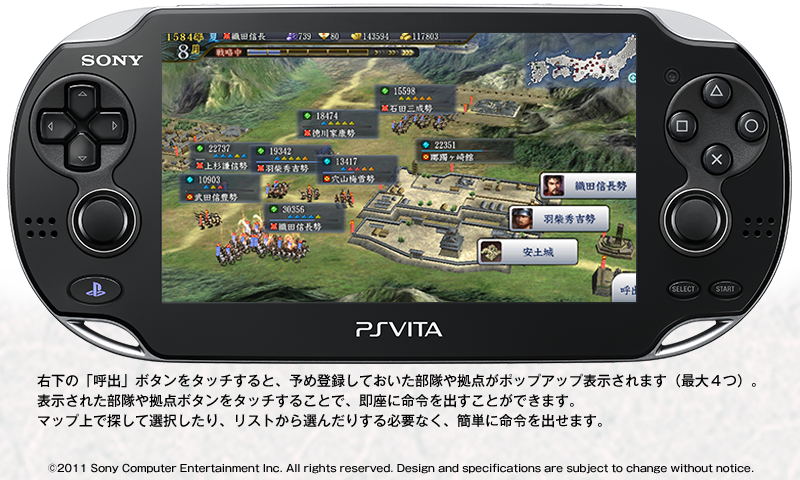 さらに、部隊・拠点の呼び出し、マップの視点移動がタッチ操作で直接おこなえるなど、PS Vita独自の機能を活かして格段に遊びやすくなりました。ネットワークを介した、お気に入り武将の交換・成長といった遊びも加わり、進化した 『信長の野望・天道』 の世界を実現しています。