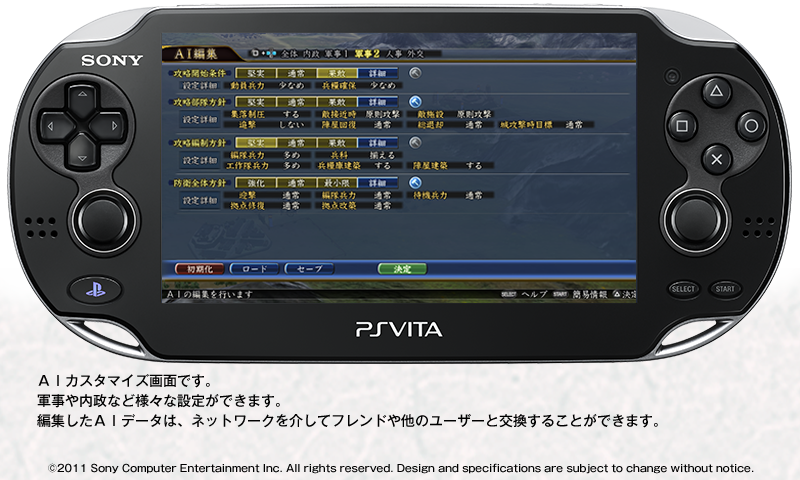 エディタ機能で作成した登録武将や AIデータをPlayStation®Networkで交換できます。