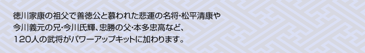 松平家7代当主。13歳で家督を継ぐ。積極的な軍事行動で三河を平定し、尾張の織田信秀と戦うが、いわゆる守山崩れにおいて家臣・阿部弥七郎に殺された。