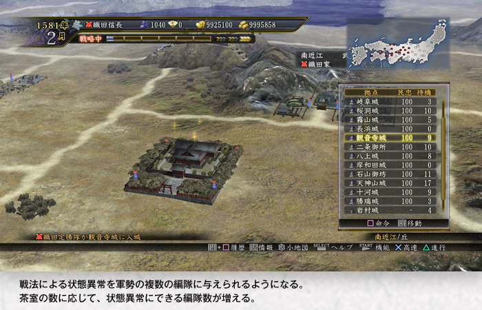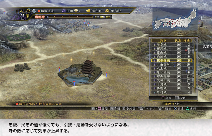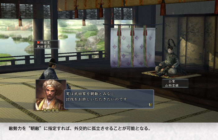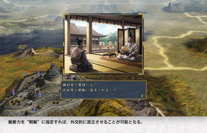 | 朝敵 | 勤皇論 | 他勢力を “朝敵” にして<同盟が結べなくなる><同盟・停戦状態が解除される><包囲網が結成されやすくなる>などの不利益をもたらすことができます。 |