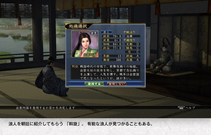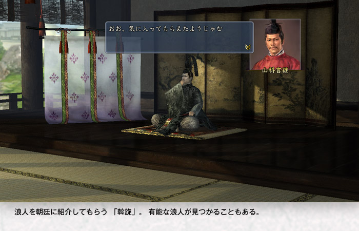 有能な浪人が見つかることもある。 浪人を朝廷に紹介してもらう 「斡旋」。
