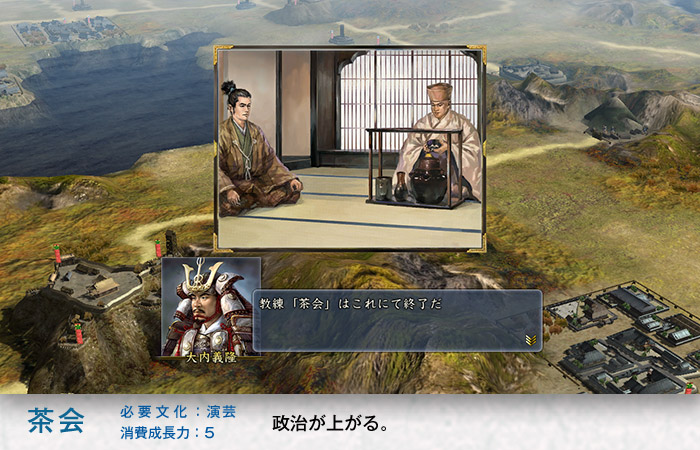| 招待 | 招待作法 | 季節初めに朝廷の使者が訪れるようになります。 官位をもらったり家宝を購入したりできます。 |