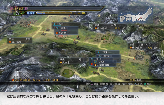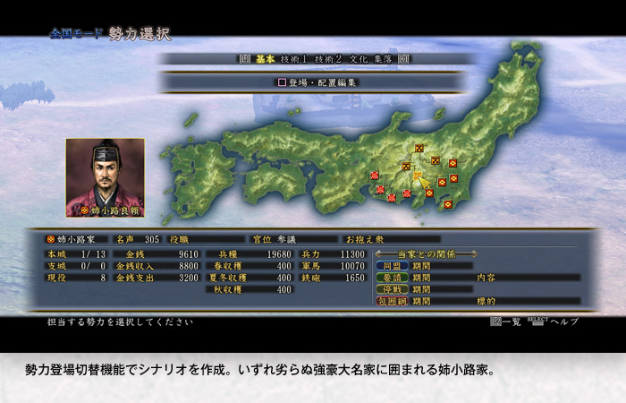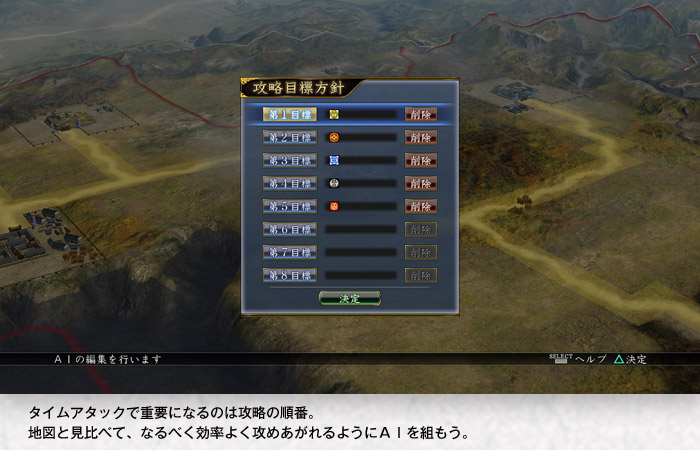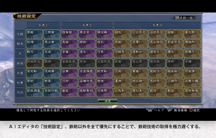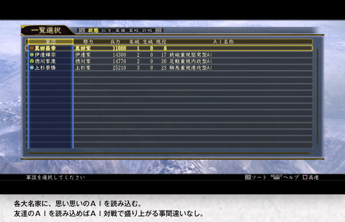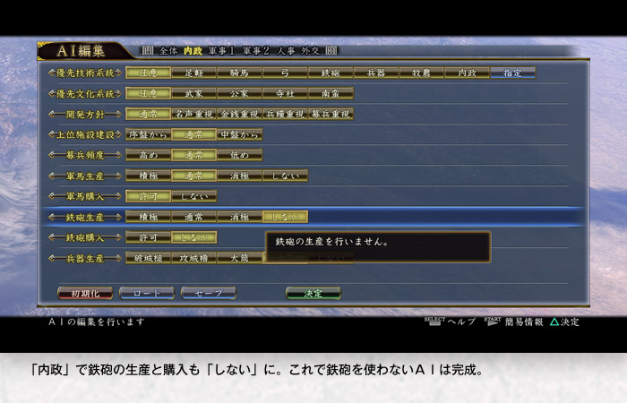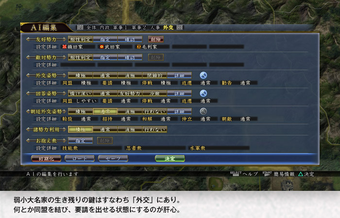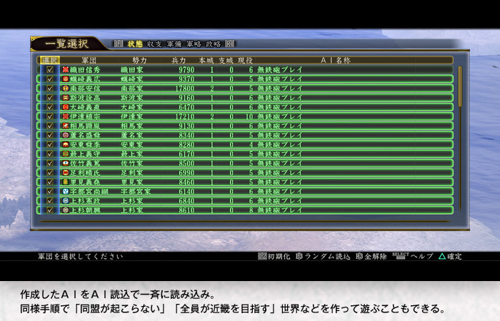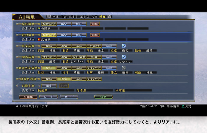 AI エディタによって「史実に近い性格のAI を設定する」 「独自の目標を決めて、どの AI が一番早く目標を達成するか競わせる」といった遊びを楽しむことができるようになります。