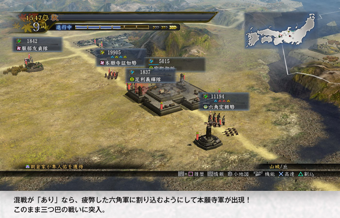 ◀ 白熱する「混戦」 | レアアイテムを探せ! | 兵糧収入量、募兵量をも調整! ▶