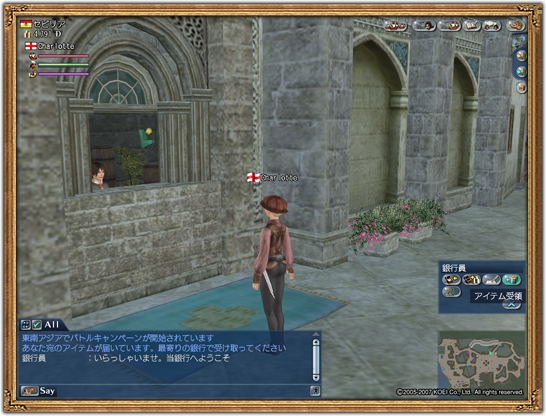 ※銀行にアイテムが届いている場合、該当キャラクターでのログイン時に