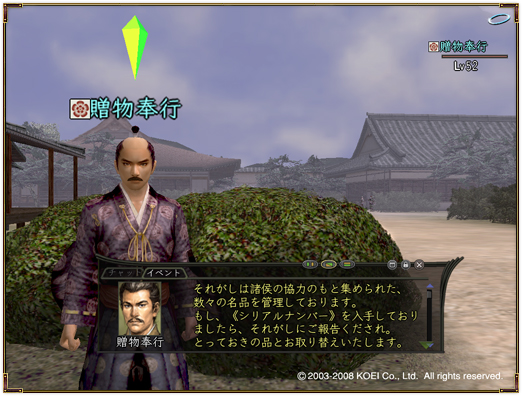 1)ゲームにログインして、城の中にいるNPC“贈物奉行”を探してください。