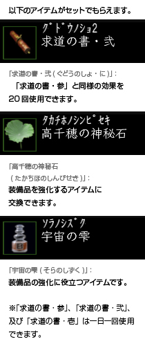 対象のお客様のプレイヤーキャラクター(福引券のシリアルナンバーを使用したプレイヤーキャラクター)のゲーム内の銀行に、福引券の金賞・銀賞・銅賞のいずれかのアイテムをお送りします。