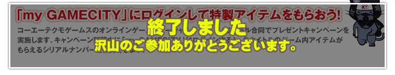 「my GAMECITY」にログインするには、GAMECITY市民IDが必要です。GAMECITY市民IDをお持ちでない方は、上のボタン(リンク先)より無料で登録できます。