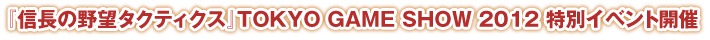『信長の野望タクティクス』TOKYO GAME SHOW 2012 特別イベント開催