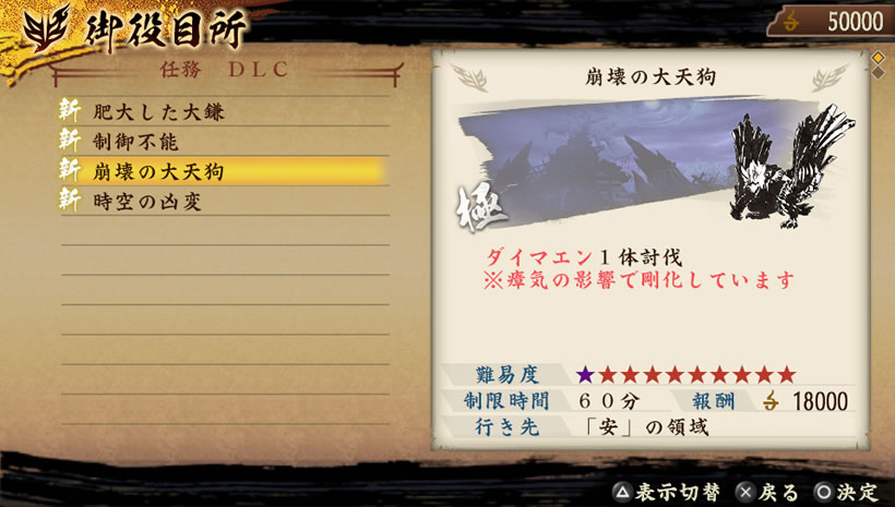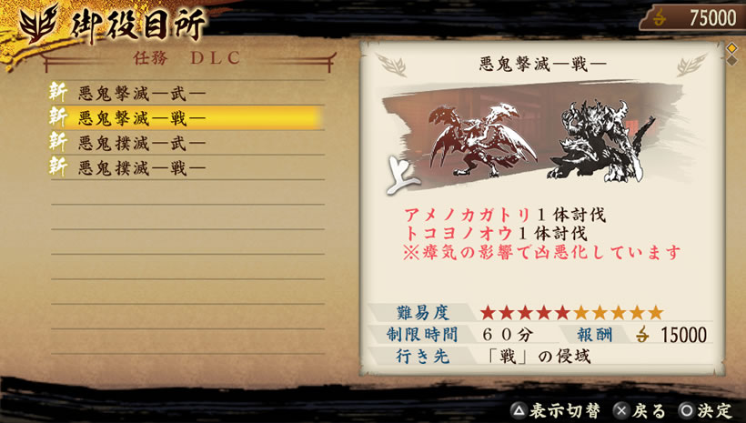 ダイテンマ、オンジュボウ二体、ヨミトサエの討伐任務。