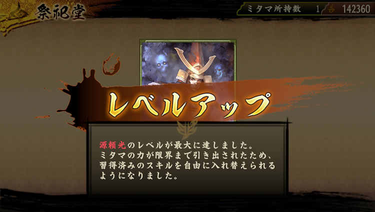 戦闘結果、および祭祀堂にてミタマが成長し、レベルを上昇させることができる。