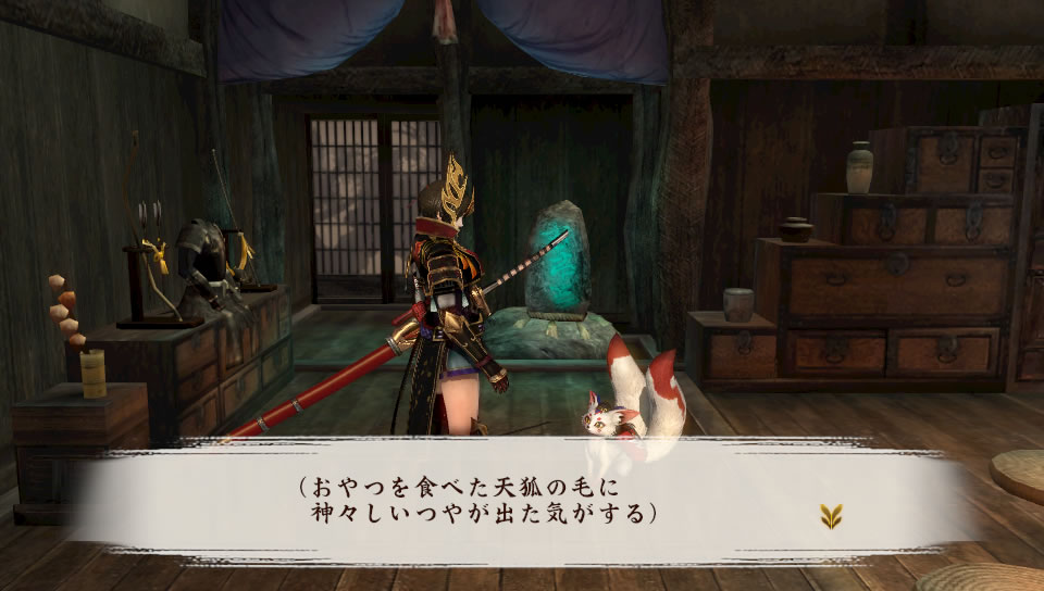 天狐は、ミタマを装着して冒険に行けるようになり、戦場で出会えばサポートもしてくれる。