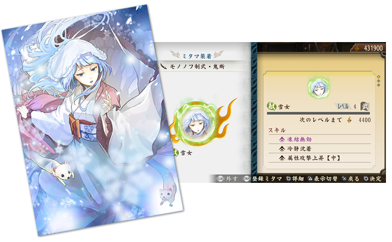 | 「週刊ファミ通」とのコラボレーション、 3代目ゲーマズエンジェル 青木志貴さんが演じるミタマ「雪女」を配信! ※週刊ファミ通2014年9月18日号(2014年9月4日発売)に付属のプロダクトコードが必要です。 |