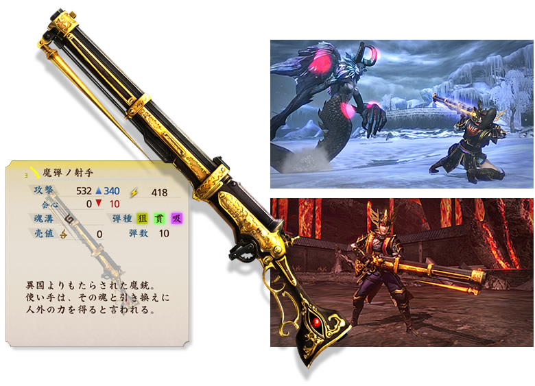 | 「週刊ファミ通」とのコラボレーション武器「魔弾ノ射手」が製作可能になる任務を配信。 難度★5の追加任務“食魂痛震(はみこんつうしん)”で手に入る素材で武器「魔弾ノ射手」を製作可能に! そして、★21の追加任務“狐日和”で手に入る素材を使えば、“魔銃・ザミエル”へとパワーアップさせることができます。 ※週刊ファミ通2014年11月13日号(2014年10月30日発売)に付属のプロダクトコードが必要です。 |