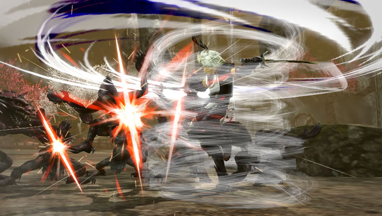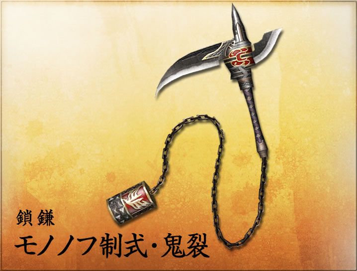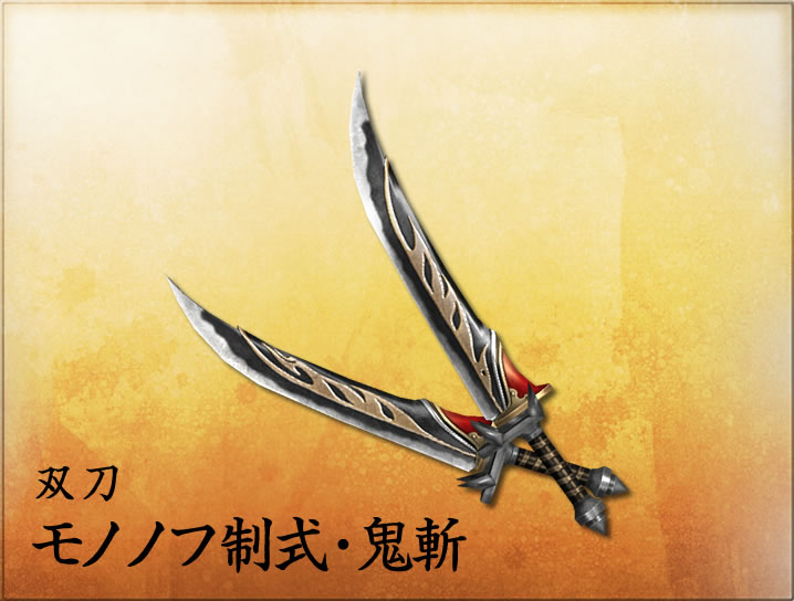 - 攻撃の速さ、範囲、威力のバランスがよく、扱いやすい武器。 敵の攻撃を避けながら攻撃できる<翻身斬(ほんしんざん)>や、力を溜めて衝撃波を放つ<真空斬(しんくうざん)>などを使い分ければ、多彩な立ち回りができる。