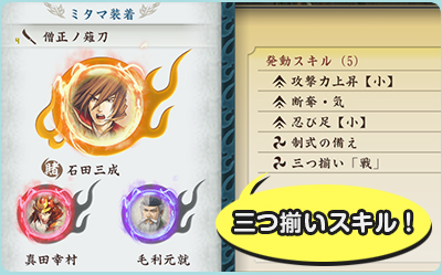 一番わかりやすいのは「三つ揃いスキル」だろう。