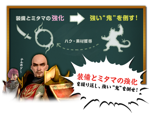 今日は予定変更、装備とミタマの「強化」を教えることにするッ!
