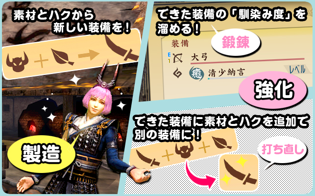 気合を入れて武器防具を使いこむと「馴染み度」が上がる!