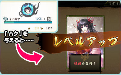 「鎮魂」するとミタマのレベルを1に戻せる。