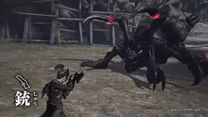 遠距離射撃が得意な武器。銃を構えると、“鬼”の弱点である「霊脈(れいみゃく)」を視ることができ、「霊脈」を撃ち抜くことで威力が上昇する。 また、複数の弾種を装填することができ、弾種によって攻撃範囲や威力などが変化する。 爆弾を投擲する攻撃 擲弾(てきだん)では、投げた爆弾を弾で撃ち抜けば、弾種に応じて異なった効果が発動する。