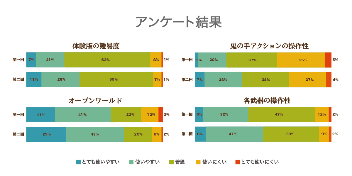 番組内でご報告しました、皆さんからのご意見のアンケート集計結果、そして「オープンワールド体験版」から「製品版」への改善点について、放送内では駆け足でのご紹介となってしまいましたので、こちらの開発者通信で振り返っておきます。